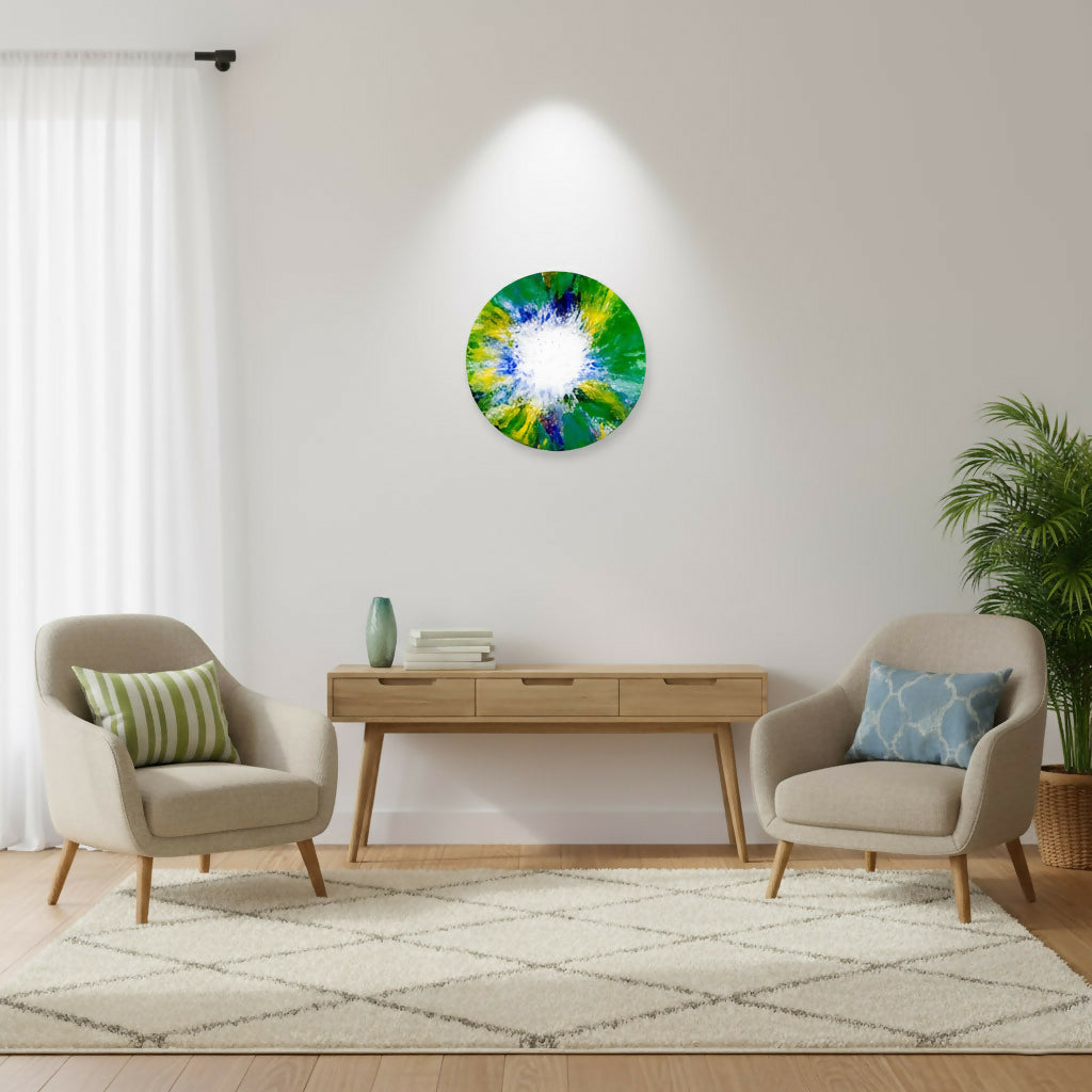 Ainsi, l’œuvre existe par elle-même, comme une présence autonome, entre le silence des matières et l’attention du spectateur. Elle se situe à la frontière entre l’art et la nature, non pas dans la reproduction, mais dans l’expérience d’un vivant chromatique qui respire et évolue dans le regard de celui qui la contemple.